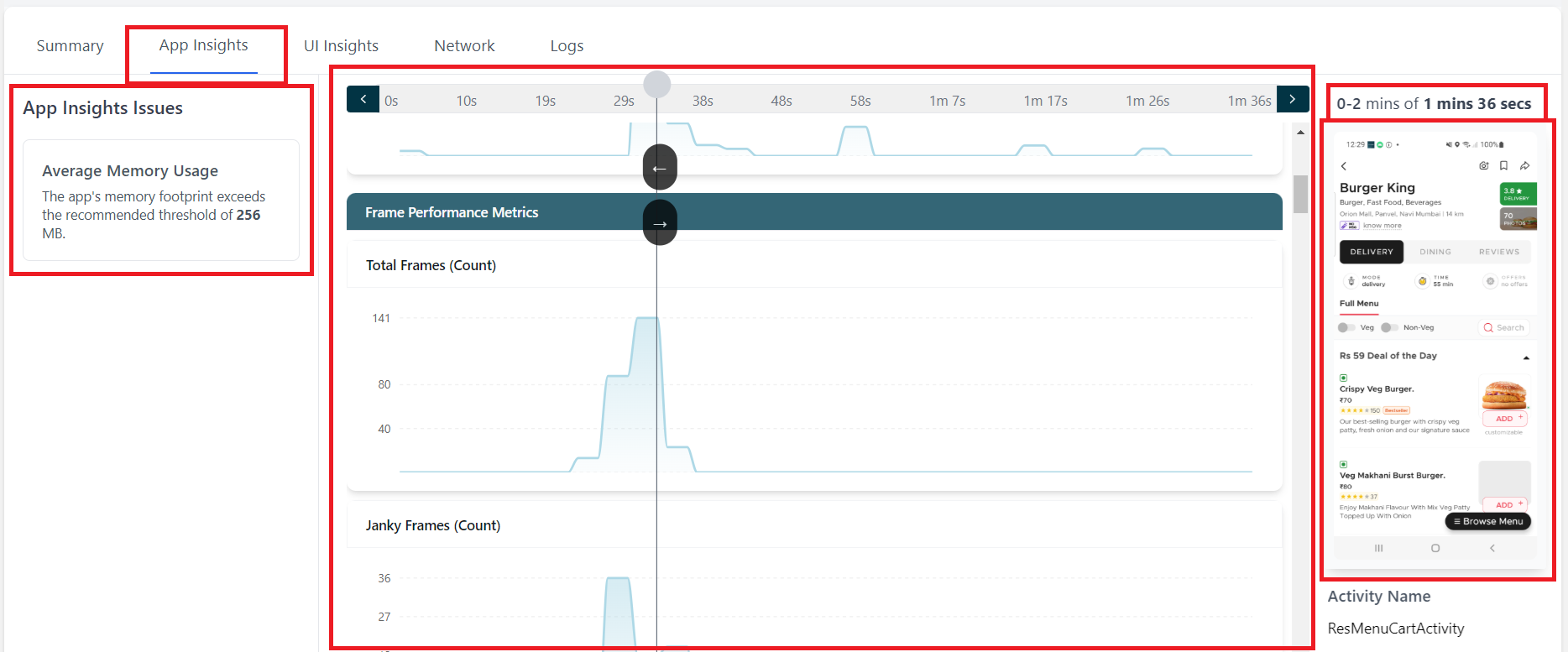 - UI Insights: Tracks page transition times to diagnose slow screen loads.