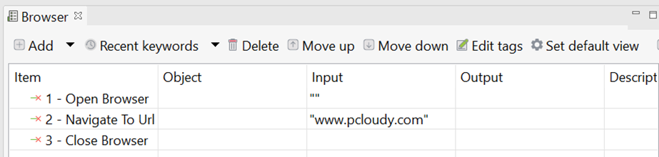 Open an existing project on Katalon which you want to Execute. For Example: Here we are using a sample test case as mentioned below with Web UI Keywords, where we open a browser and navigate to an URL and close the browser.