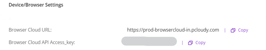 apiKey(You will get the Browser Cloud URL and API Key from the Profile Section on the Pcloudy portal)