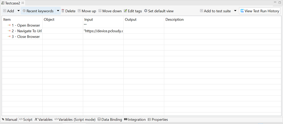 Create multiple Test Cases(Example: Testcase1 and Testcase2) as mentioned below on Katalon.