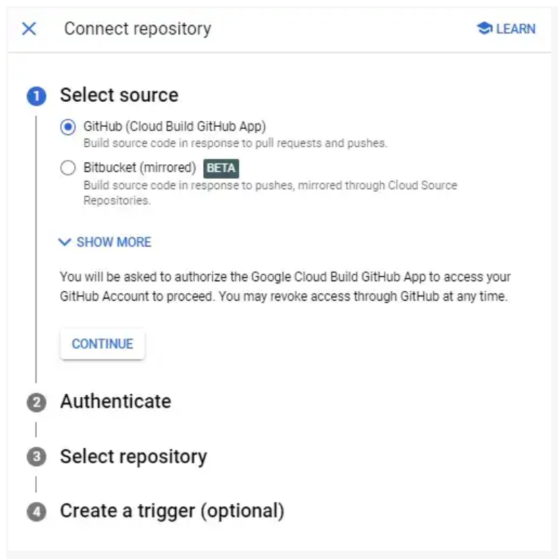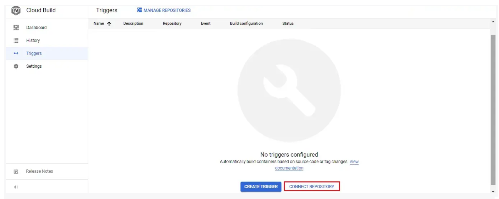 - To use the trigger functionality, connect your GitHub repository to Google Cloud CI by clicking on "Connect Repository".