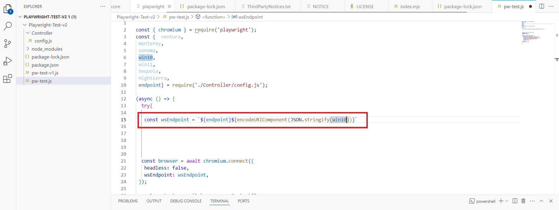 - Open pw-test.js in your project Enter the desired OS version (e.g., "Ventura", "Win10")