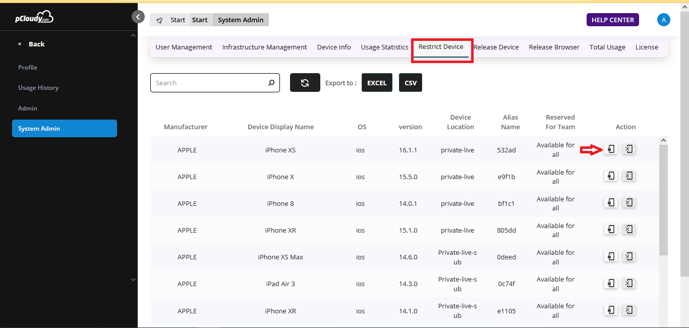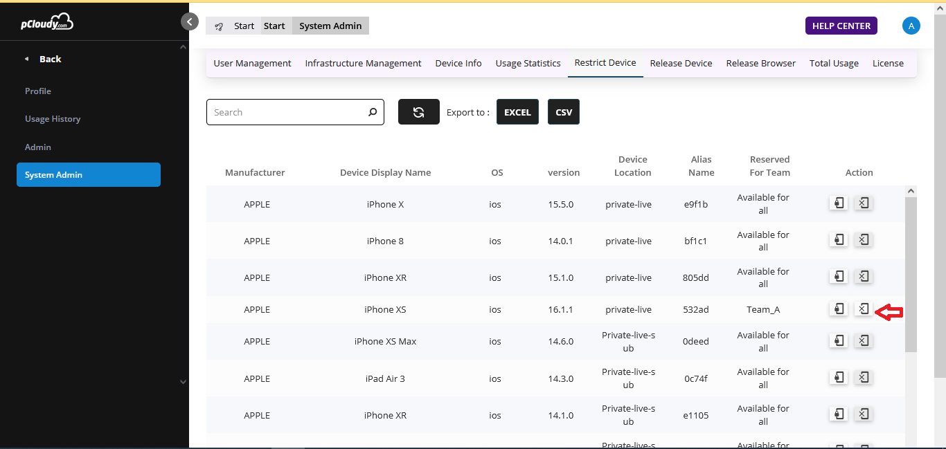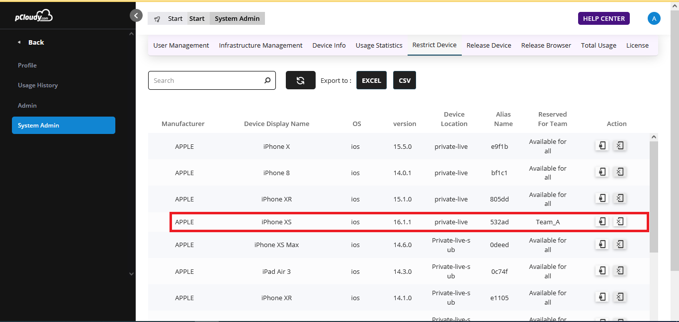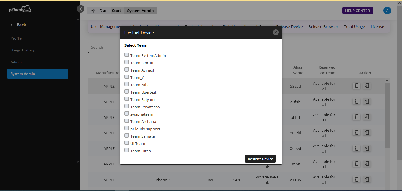 E.g. . For iPhoneXS ,If system-admin clicks on the unrestrict icon and selects Team A. Now Team A will not be able to see the iPhone XS.
