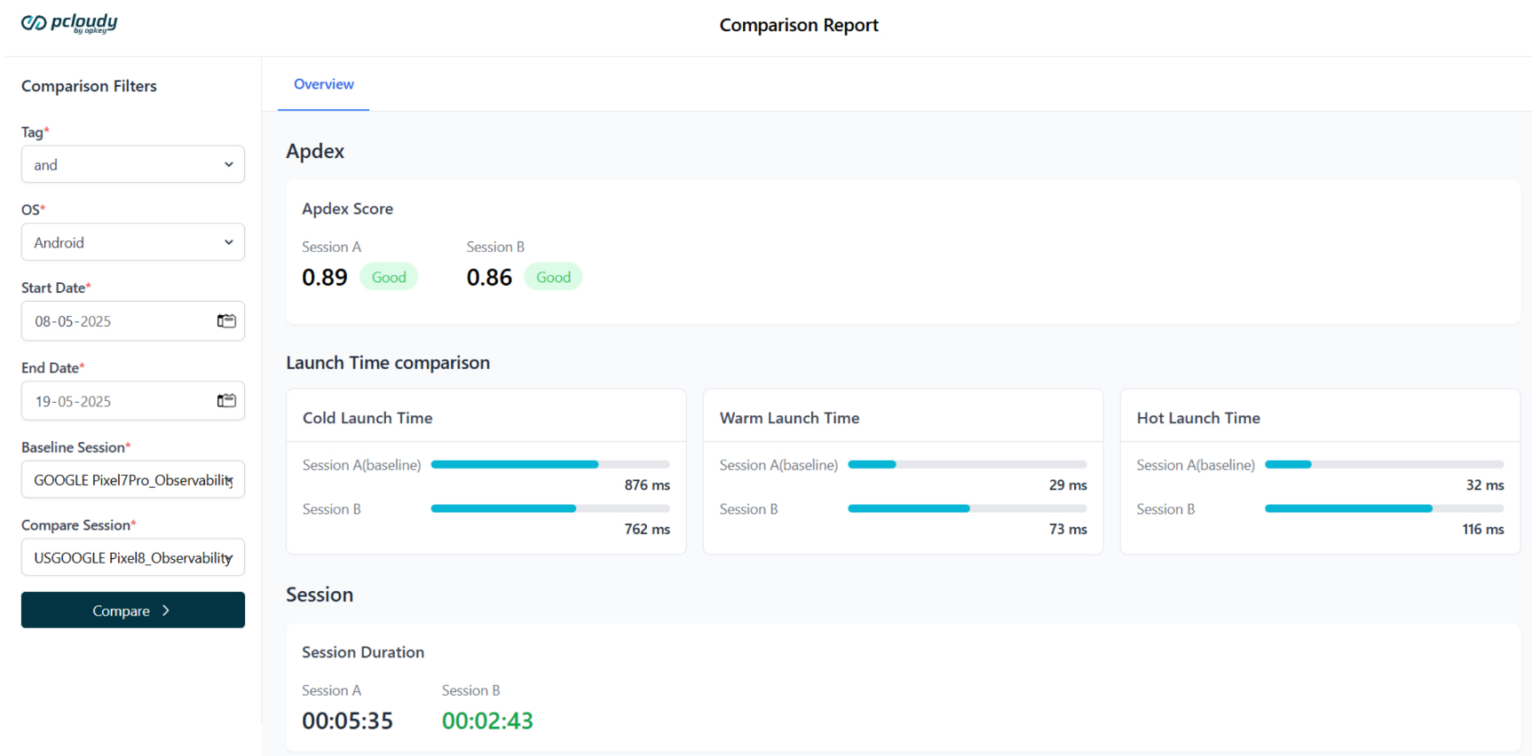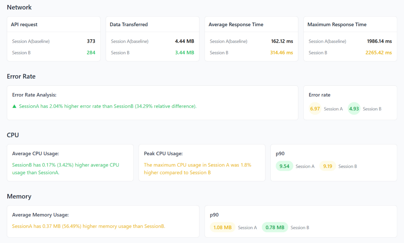 We've introduced a report comparison functionality in the App Performance section that allows users to compare two app performance reports side by side. This is a crucial step for teams focused on continuous performance improvement. Whether you're comparing against a prior version or a competitor's app, this tool helps you: