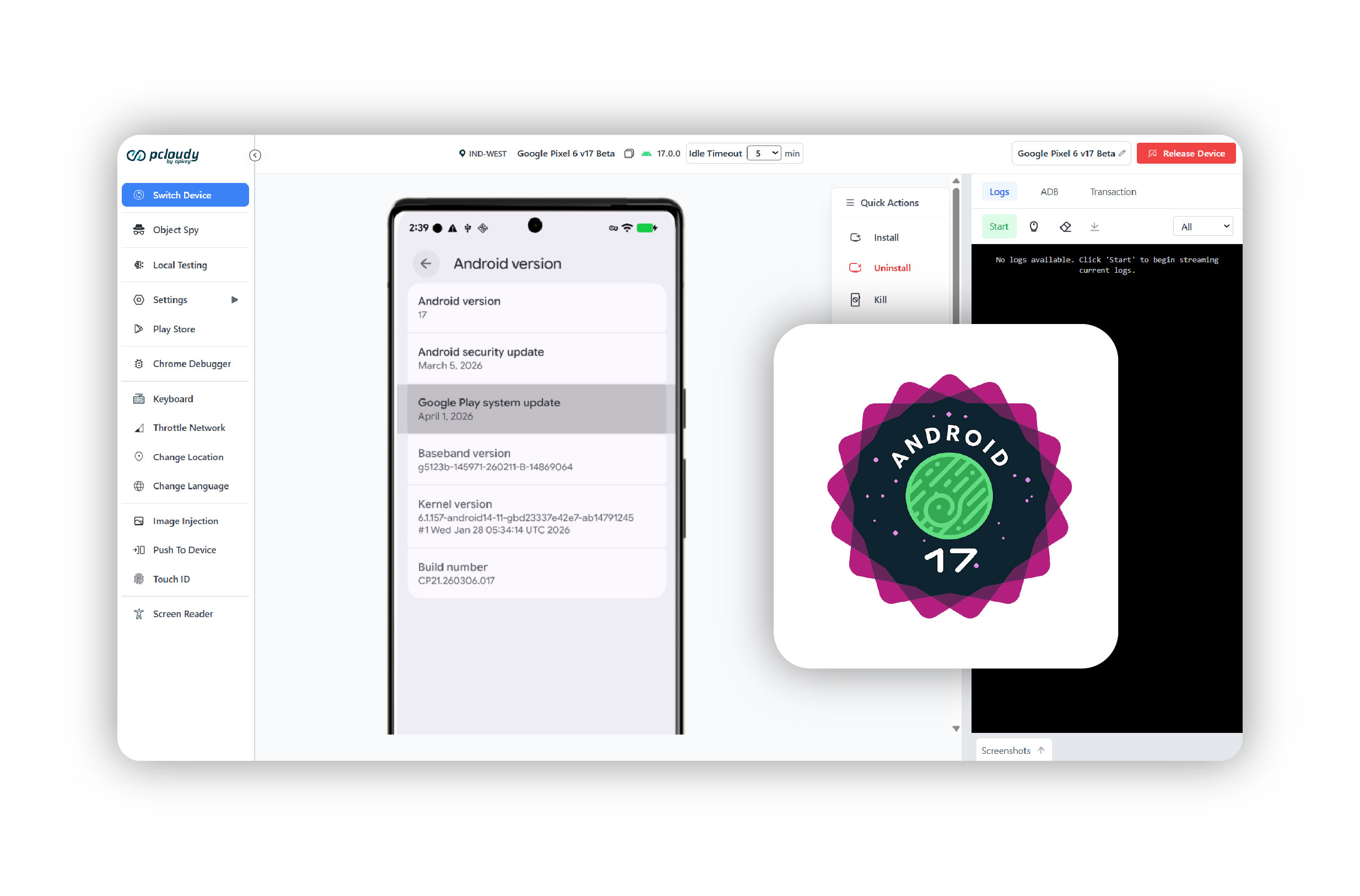 Pcloudy has extended its device coverage to include support for devices running Android 17, enabling teams to test their applications on the latest OS versions without delay. This helps teams identify OS-specific issues early, improve compatibility, and ensure readiness for users adopting the newest Android ecosystem.